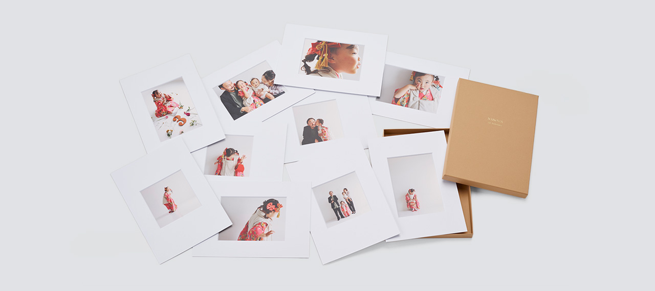 5枚セット、10枚セットからお選びいただけ、写真に合わせて横型、縦型、正方形を自由にレイアウトを組み合わせてご作成いただけます。
